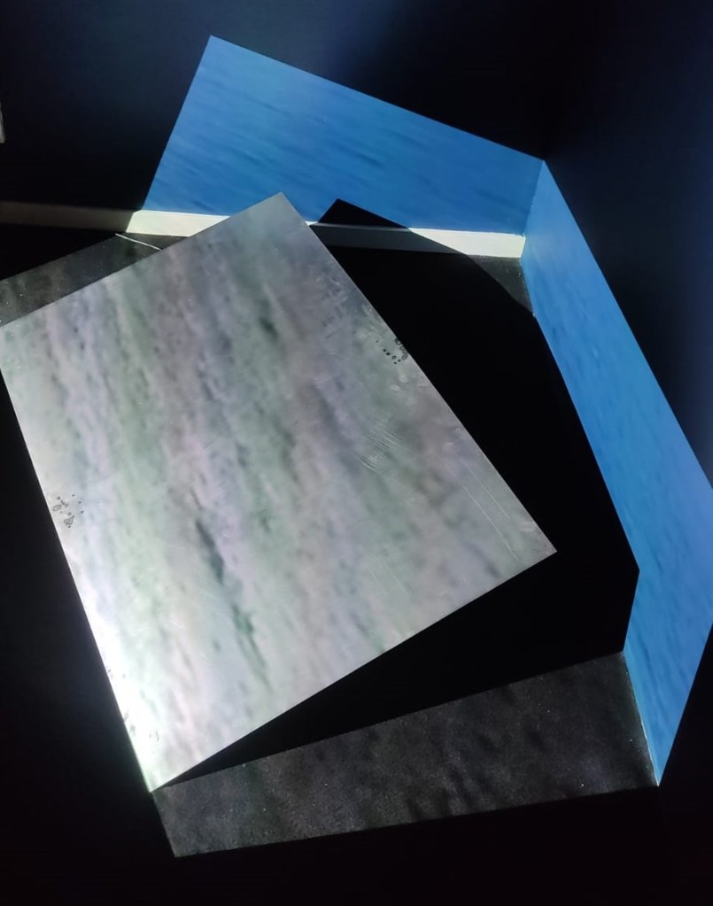 This videoinstallation uses a metal plate which, with the help of a motor, goes up and down to reference a wave movement. You can check a fragment of it here: https://youtu.be/Hp6YzxvG2BM and the full short movie here: https://youtu.be/jPir9X0HWEU