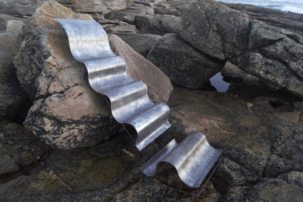 What happens if we depict the movement of a wave in a metallic and fixed object, where the movement becomes an image and not an action. And what if we make it vertical instead of horizontal and take it out of the White Box? The sculpture becomes unstable, shows its weaknesses and requires the artist to move it until it finds a place where it can adapt. Thus, the piece changes according to the environment, it entails a performance and a constant transformation; it shows its limitations as an icon