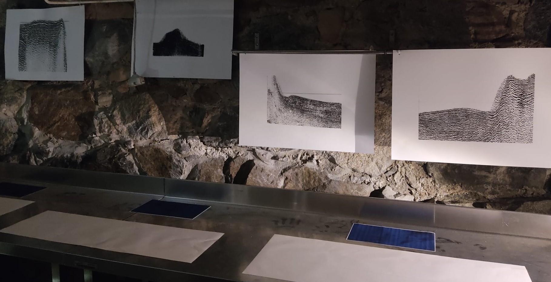 To access these images we have to rethink the mechanisms that create them. Sonar consists of emitting sound waves in the depths with the aim of transferring their bounces and durations to a visual representation. That is to say, they have to take into account cultural values when representing a place, they are a translation of something that by its very nature is not visible to human beings. I return to this idea to transfer these translations to another radically different format: screen printing.